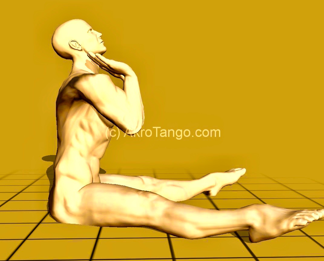 Tatsächlich darf der Base jedoch nur mit Armen und Hüfte balancieren. Der Balancebereich ist immer innerhalb der Oberschenkel –> kein Hohlkreuz!