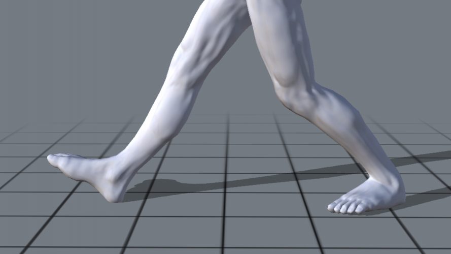 Following the impulse, the center of gravity rolls from the heel to the toe, with the hip overtaking the knee. As soon as the knee protrudes over the toe, the free leg touches down. The biomechanics warns: A strain on the knees outside the foot area is not healthy for them! The weight force in the movement, however, does not act vertically, but obliquely from the front. This creates the impression that the knee reaches far beyond the foot area. Imagine a jumping stick that is compressed along its axis and tips over at the same time.